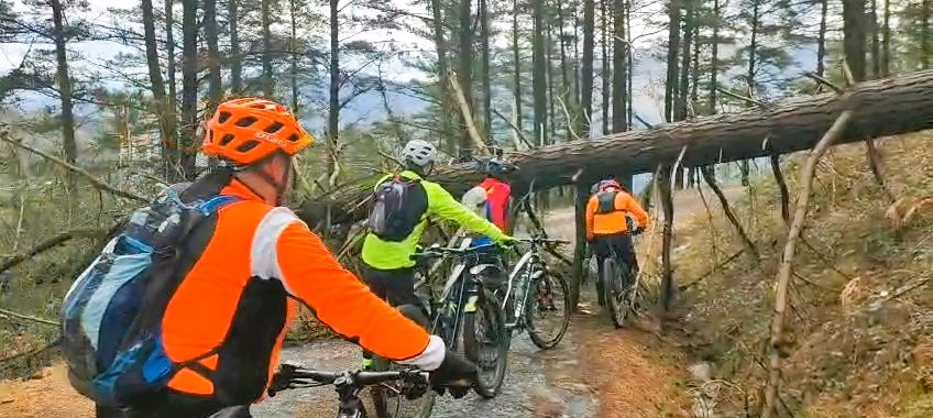 Un año más nos acercamos hasta la ermita de Santa Águeda. Cancelada la quedada por las lluvias el día 8, la pudimos hacer este domingo tras un sábado muy lluvioso y ventoso. Las consecuencias las hemos visto durante el recorrido, caminos levantados por las corrientes de agua, pinos tumbados sobre las pistas y la desembocadura del Nervión con el mar muy turbio. Todo forma parte de la aventura.